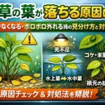水草の不調は葉に出やすいですが、原因が根元や底床にあることはかなり多いです。植えすぎ、浅植え、埋めすぎ、ソイルの劣化、根茎を埋めるミスなどがあると、葉だけ見ていても改善しません。株元が不安定なら、水草の根が張らない原因は?浮く・抜ける・活着しない時の対処法も確認したほうが原因を外しにくいです。