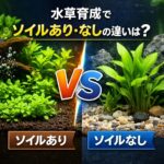 葉の問題でも、原因が根側にあることはかなり多いです。植えたばかりで根がまだ弱い、底床が薄い、ソイルが崩れている、植え替えを繰り返しているといった状態では、株がその場所にしっかり定着できず、新芽より先に維持へ力を使いやすくなります。特に植栽水草では、根が動き始めるまでは新芽の勢いが鈍いことも多いです。根張りの問題は水草の根が張らない原因は?浮く・抜ける・活着しない時の対処法、底床の基本はアクアリウムでおすすめソイルはこれ!ソイルの種類と選び方も参考になります。