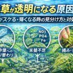 水草を育てていると、葉の一部が半透明になったり、全体がスケるように薄く見えたりして、「これは溶ける前兆なのか」「栄養不足なのか」「もうだめなのか」で迷いやすいです。