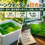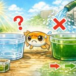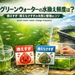 まず青水そのものの作り方を整理したい方はグリーンウォーター・アオコの作り方。稚魚飼育に役立つ水作りを。、維持全体の考え方を先に見たい方はグリーンウォーターを維持する方法|薄くなる・濃くなりすぎる原因と管理のコツ、一般的な水換えの基本を確認したい方は水槽の水換え完全ガイド|頻度・量・やり方を初心者向けに解説もあわせて読むと判断しやすいです。
